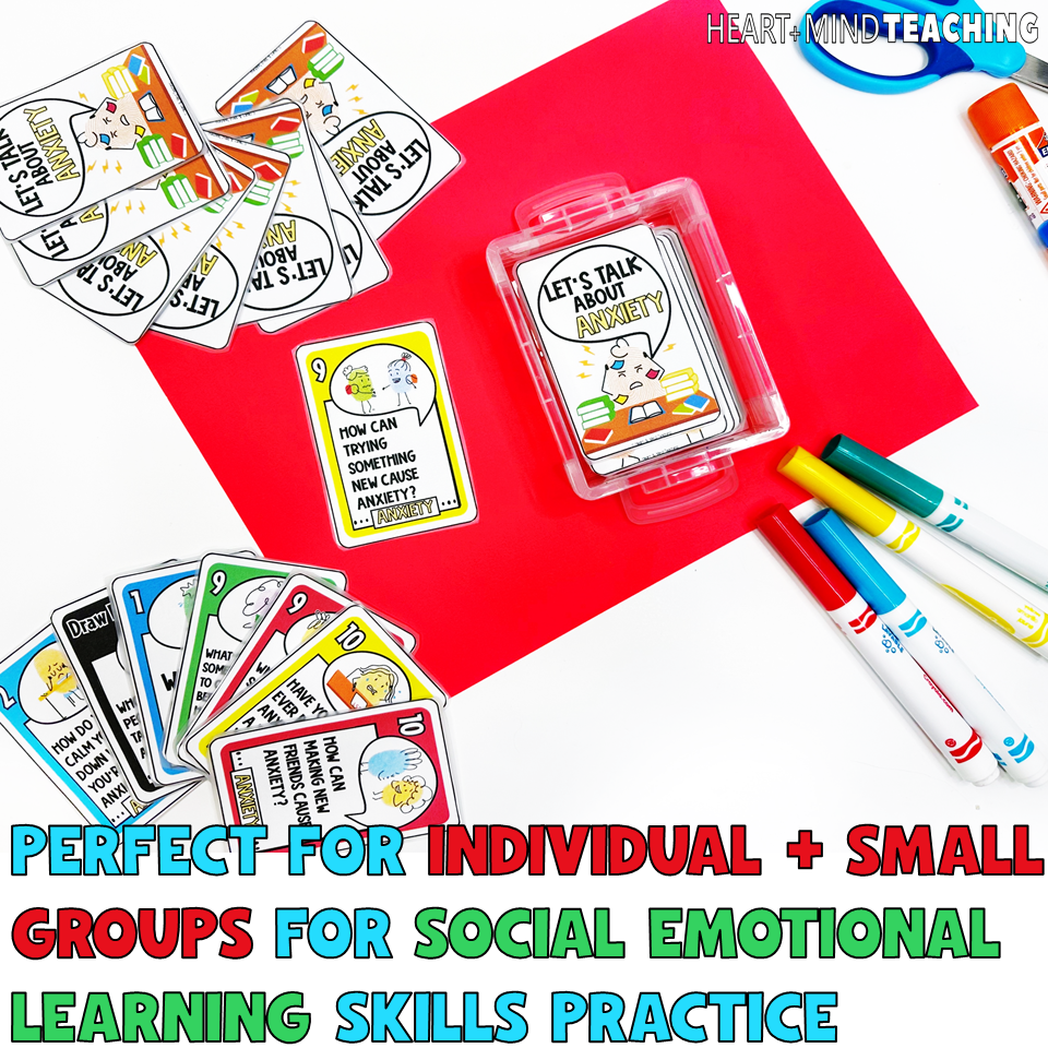 These anxiety playing cards are a must-have for individual and small groups for Social Emotional Learning skills practice. Students will answer anxiety discussion questions as they play. This is a perfect centers activity or counseling activity.