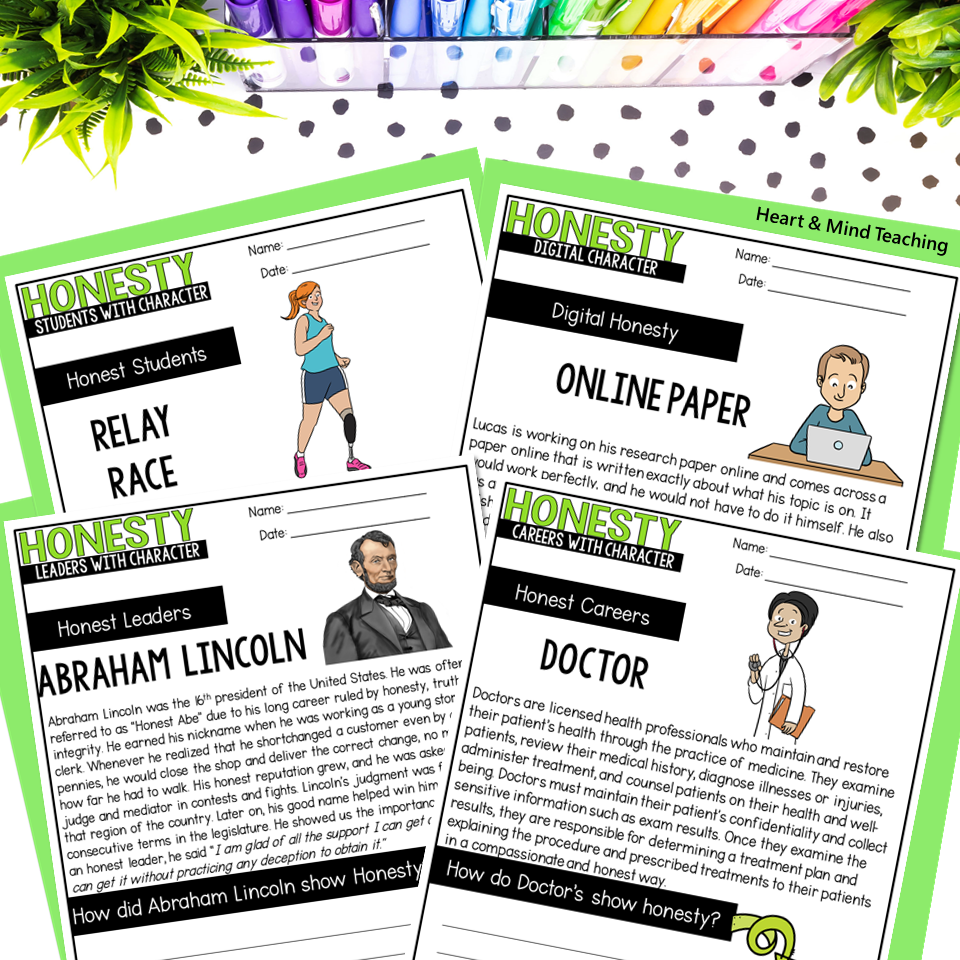 1. Ways to be Honest: Ways to show honesty at school, home, and in your community.