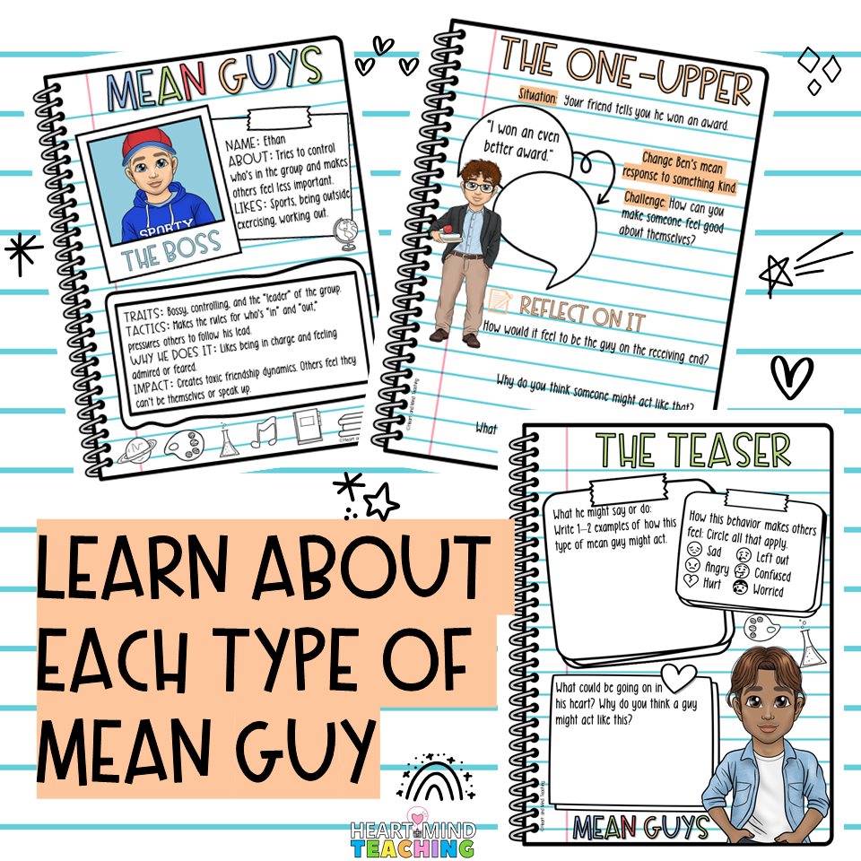 ✔ Assign each girl a "mean guy" to learn about. Discover why they act mean, their traits, tactics, and their impact on others.